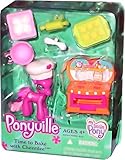 - Playset comes with pony figure, 2 snap-on hairstyles and skirt accessories.