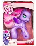STARSONG is a talented singer and dancer who shows off her skills best when she's on stage. Sometimes a bit shy off stage, she loves to be in the spotlight putting on shows for her friends.The name of the game is "fun" with this loveable STARSONG pony figure, who has her name and music note patterns printed in pretty designs down her side. Take her on all of your adventures, but don't forget to brush her hair with her pony-sized brush -because this is one pony who always likes to look her best!