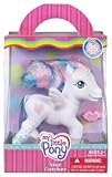 Join STAR CATCHER the Pegasus pony for an adventure of fun! Indoors or out, any time of day, this pony comes ready to play! STAR CATCHER pony was born in November and her favorite color is midnight blue. Moon flowers are her favorite flowers and her favorite thing to do is count the stars! Pretty Pegasus pony figure is all about love and making wishes come true with her trailing CUTIE MARK design!